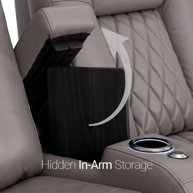 Hidden In-Arm StorageArmrests of this seat open up to reveal plenty of storage room.