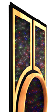 The Deluxe Round Star Panel comes with 5 pieces; 1 Round Starpanel, and 4 Standard Star panels with accents. An ideal setup for this beautiful item would be a spacious ceiling. This round star panel frame borders the round panel underneath it. It contains a accent ring that can be alternate color. This heavy duty frame will last and accent any home theater room nicely. The 4 accent panels create a frame for the round star panel.