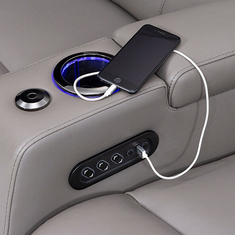 The Kodiak exists for those who value state-of-the-art aesthetic and comfort in their home theater seats, and comes in 4 luxurious colors from the most prestigious selection of leathers painstakingly chosen for the best in Seatcraft's line of home theater seats. The clean refreshing stitching and gridline upholstery can't hold back the powerful features of the Kodiak; Built in Soundshakers to feel your movie, usb charging armrest recline ports, ComfortView power headrests, full power recline, free sleek black tray table, in-arm storage, black chrome cupholders and baselights that exude powerful sapphire lighting on and off at the touch of a button.