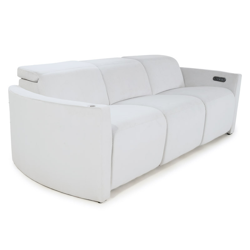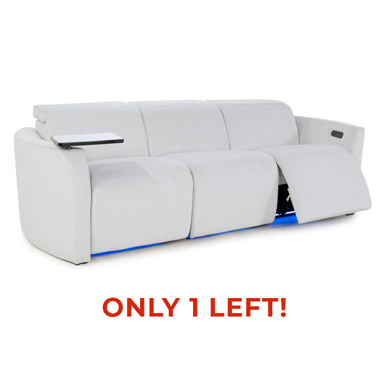Seatcraft Palisade FX home theater seating has a flip-up powered headrest that can be adjusted to your preferred position. Curved outside armrests give this seat a unique style. It features USB-C charging in each armrest and optional glass tray tables are available as well for each home theater seat.