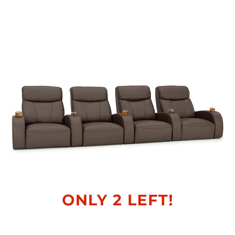 The Rialto FRONTROW Theater Seating® is an exquisitely crafted addition to the Seatcraft line, featuring smooth lines and supple curves for a deluxe seating experience. Its front row design sits low to the ground, allowing seats in back rows a full view, while at the same time offering plenty of space to stretch out. This charming seat is manufactured from Top Grain Leather, which is known for its superior grain, texture, and feel. Gently curved armrests impart a sense of relaxed style, which is matched by this seat's commitment to leisure. As you lay back against its padded headrests and cushioned backing, the Rialto FRONTROW Theater Seating will transport you right into the center of the screen action. The seat comes detached so that it can move easily through doors and into your home. Choose from rows of 2, 3, or more, with loveseat configurations also available. Manufacturer