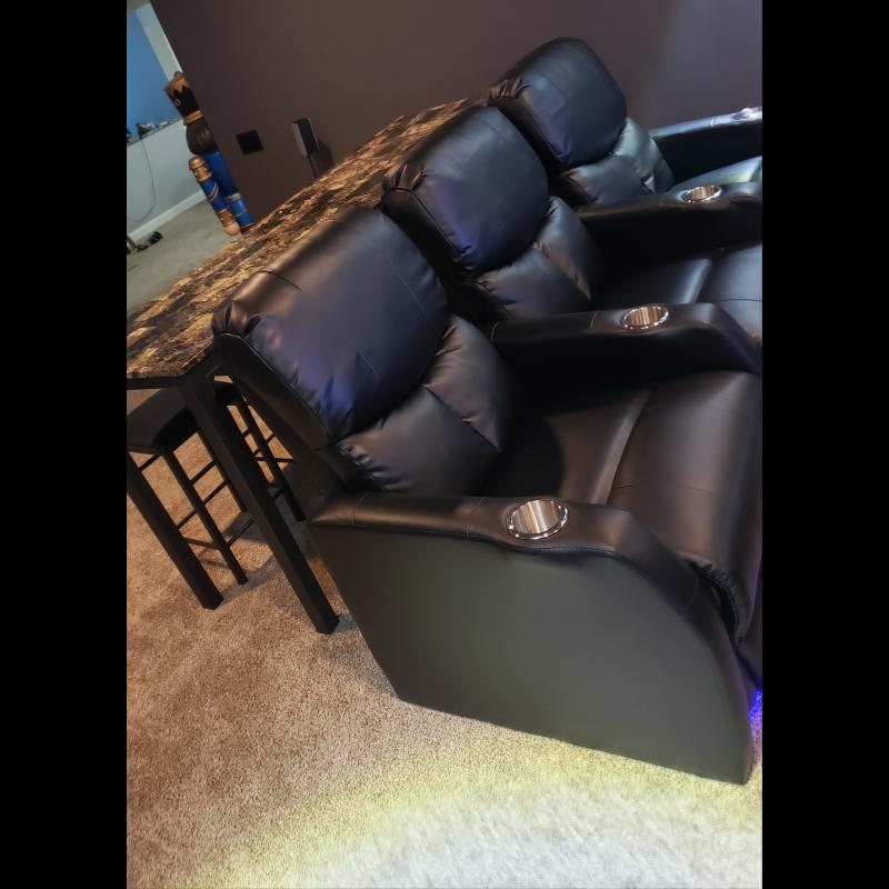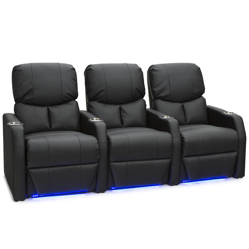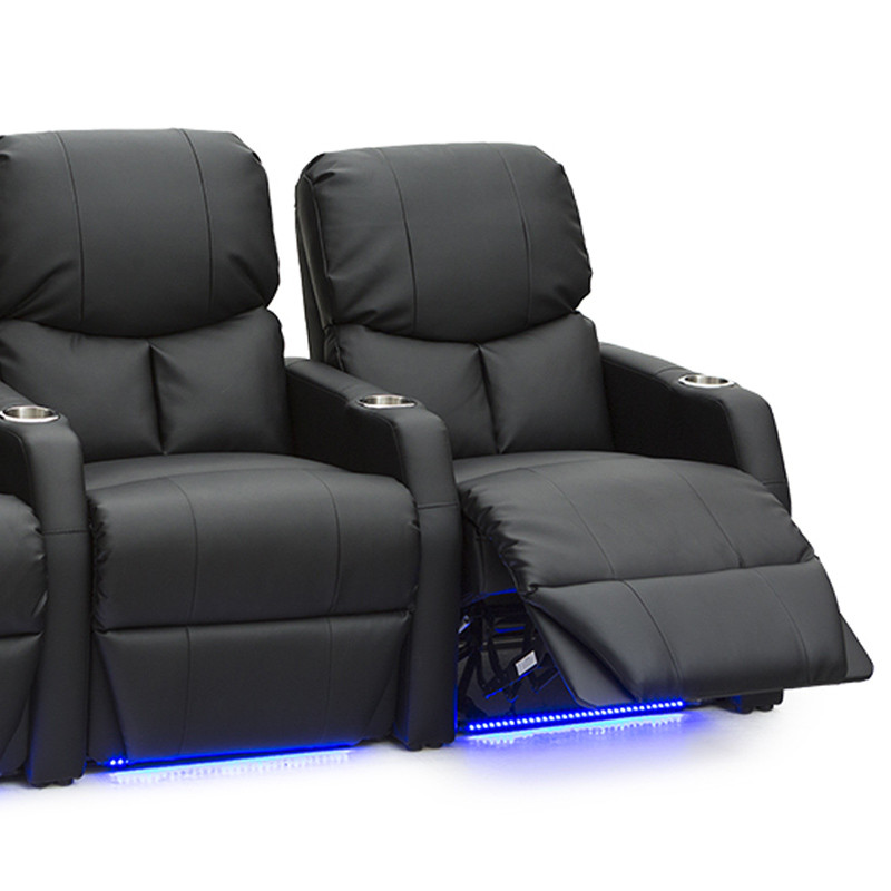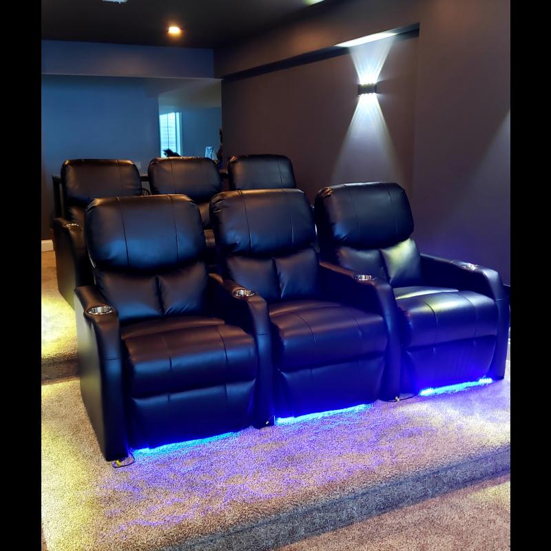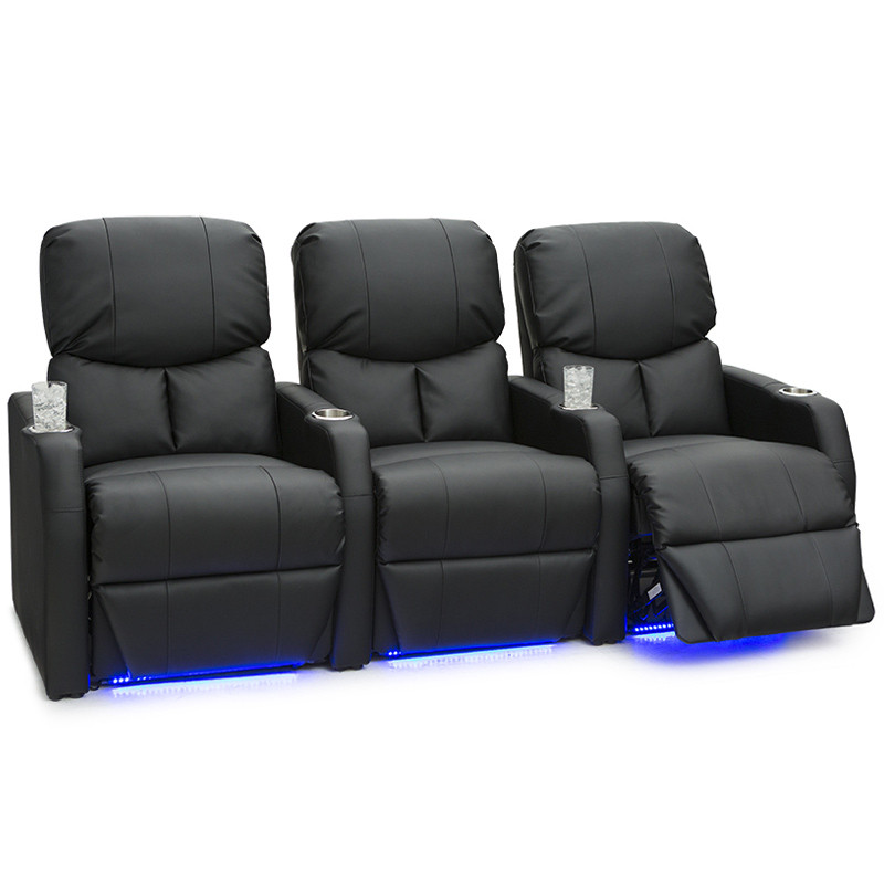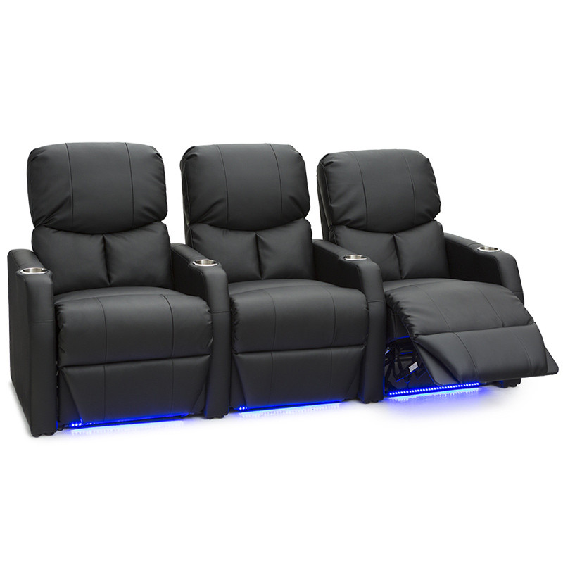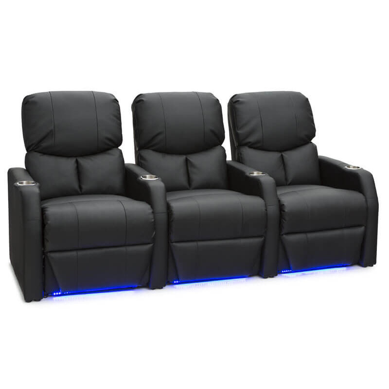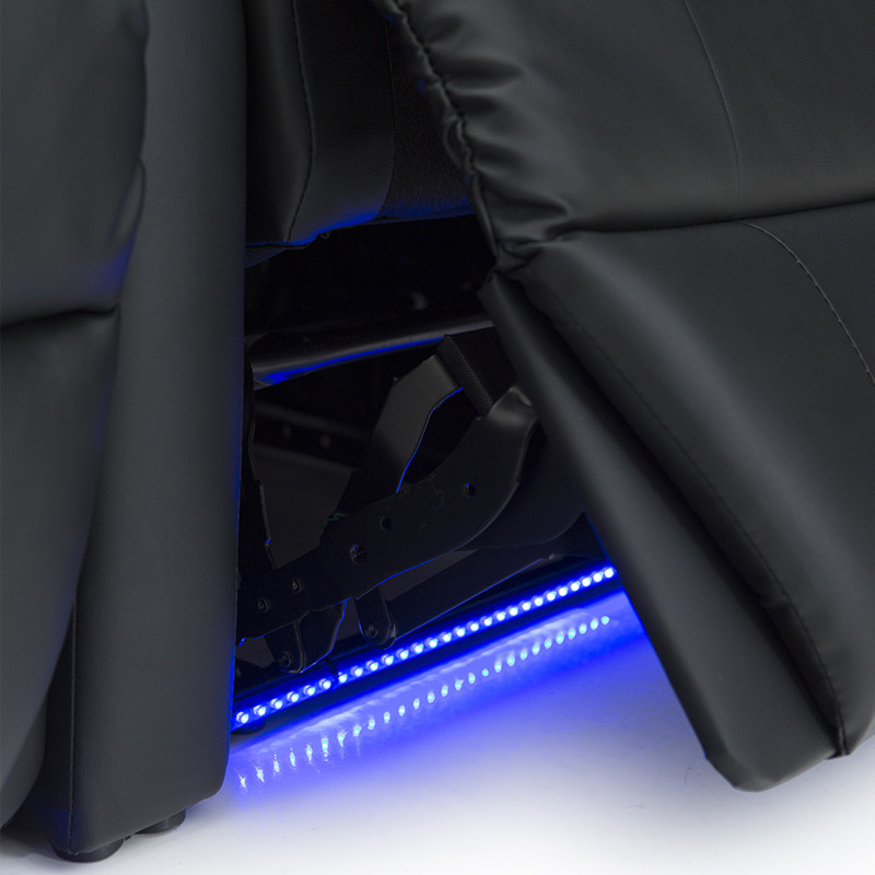 In addition, a smaller scaled armrest makes this seat a compact fit in any home theater room setup; this straight configuration lets you easily create your own flexible floor plan. Chaiselounger footrests provide ample lower body support, so you can recline without interruption. Ambient base lighting allows you to find your way in the dark with an inspiring, artistic azure accent. These features and more make the 12006 one of the most comfortable seats on the market: you are welcome to experience its pillowy comforts for yourself.