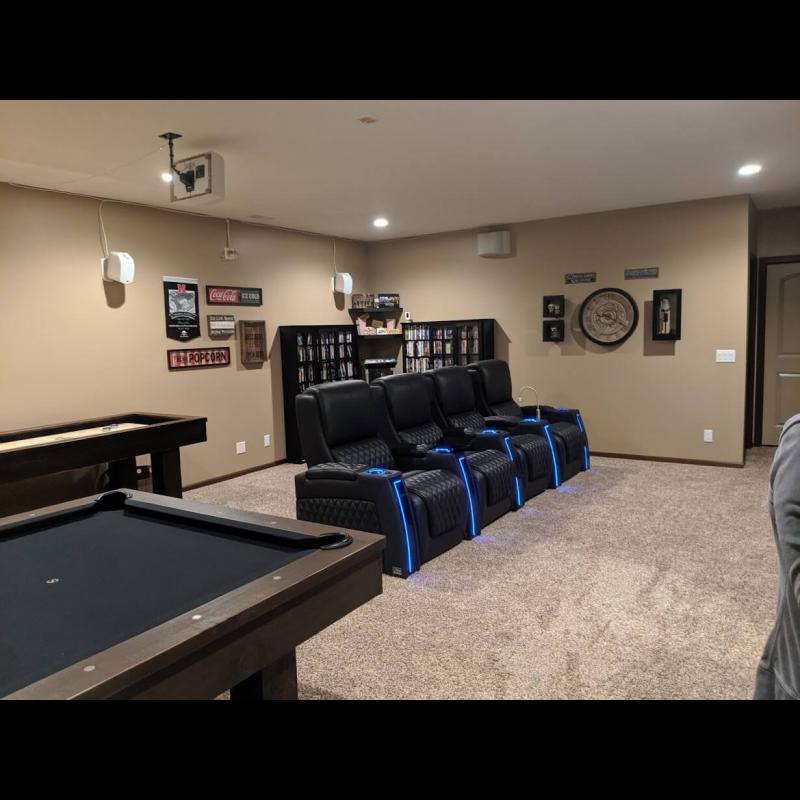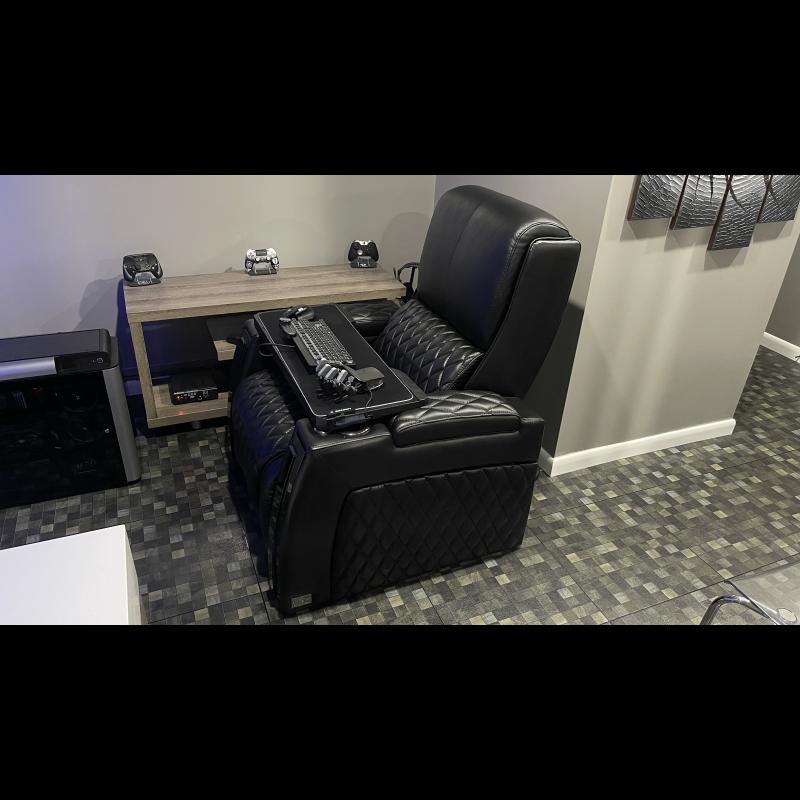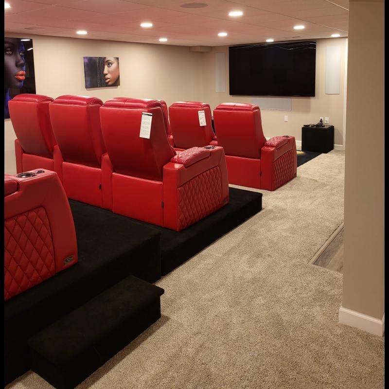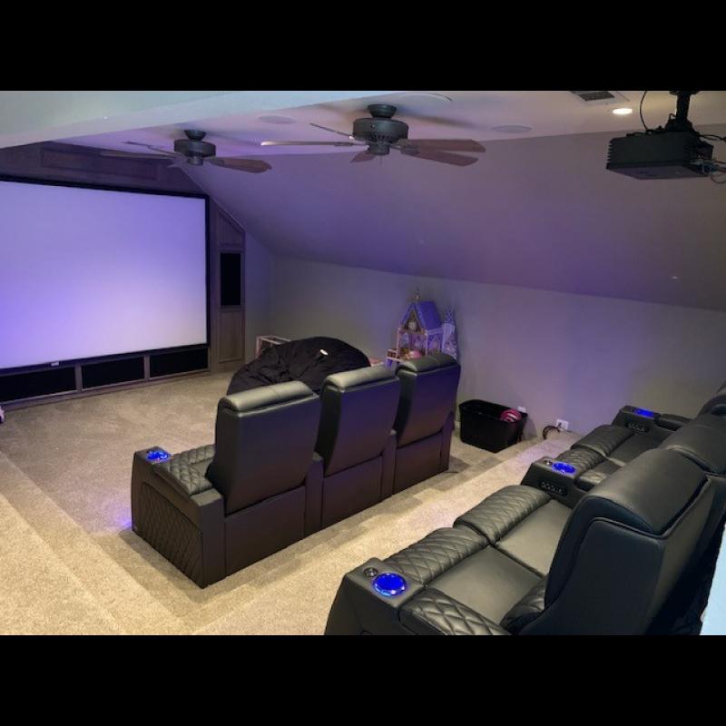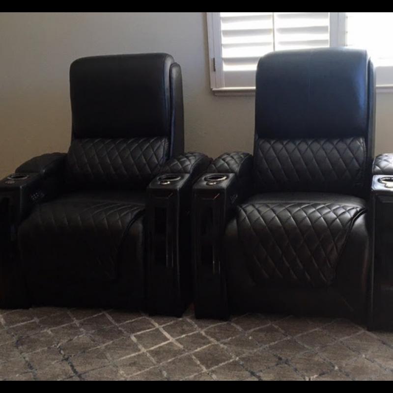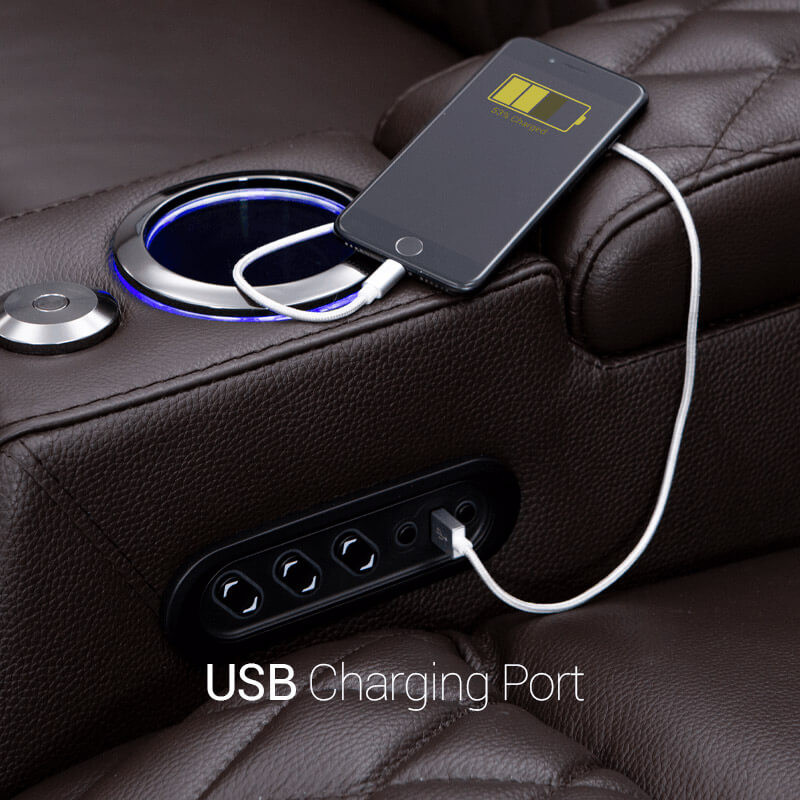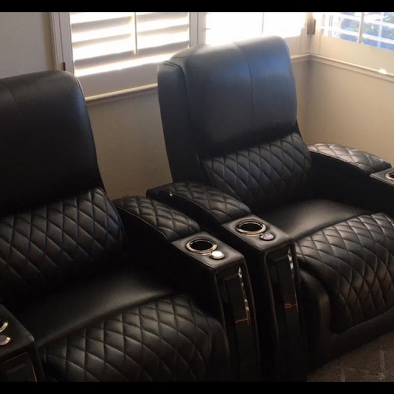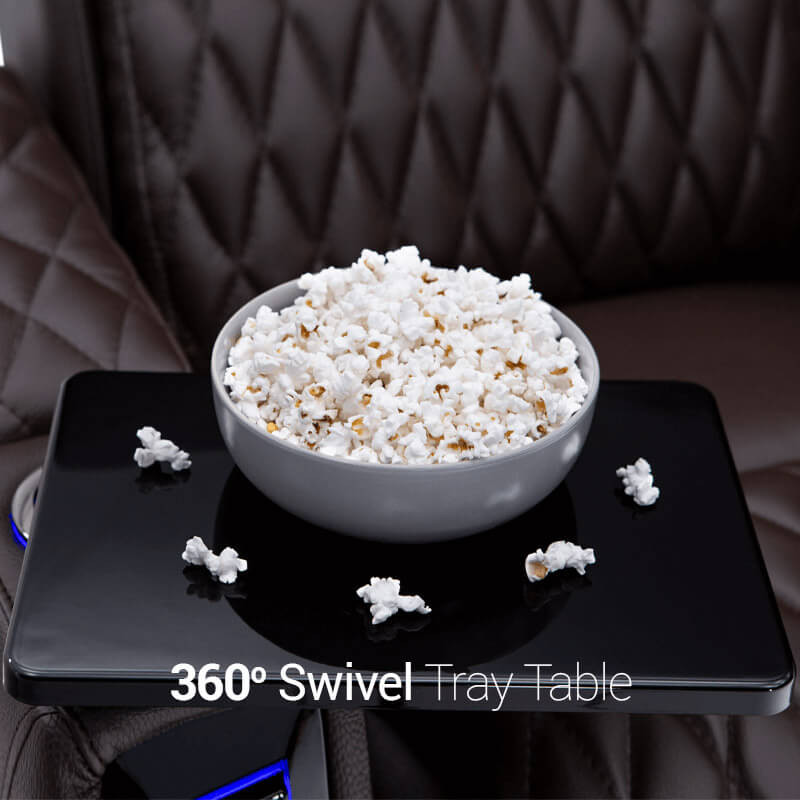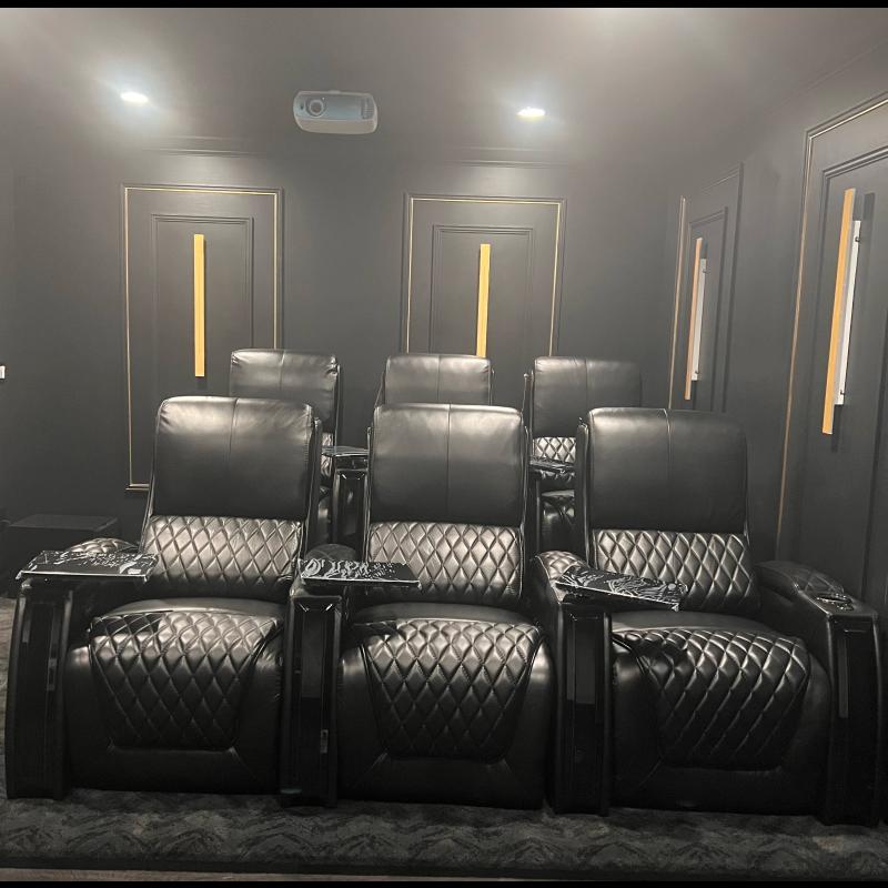 Create a row of Italian leather home theater seating in your choice of color, featuring power headrest, lumbar, and recline, Seatcraft Apex gives you a comprehensive range of comfort options with the touch of a button. Equipped with Lighted Cupholders, LED Armrest Accent Lighting, and a USB Charging Station these seats create the Best Home Theater Experience Possible. Hidden In-Arm Storage Compartments store an included Tray Table that is perfect for snacking while you enjoy the movie. Relax in Comfort with the Fully Extendable Chaise Style Power Recline Footrests. Built in Sound Shaker Transducers give you the ability to further elevate your Home Theater experience by adding on an Amplifier Kit to feel the screen action in your Home Theater Seats.