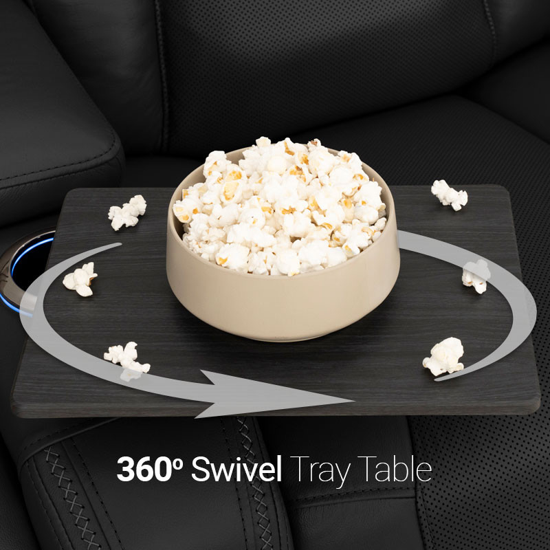 FREE Swivel Tray TableRemovable swivel tray table with a polished black finish.