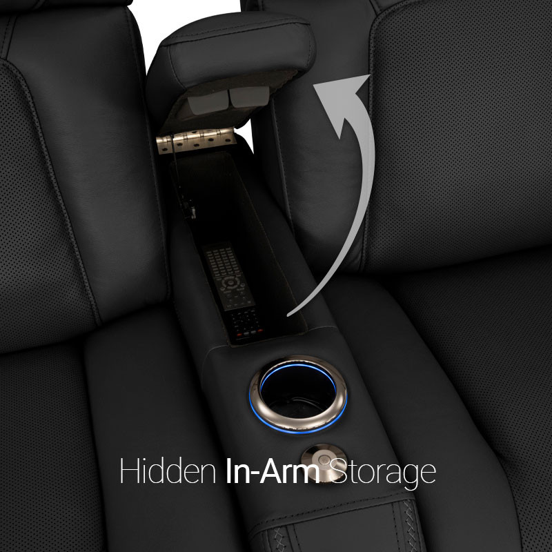 Hidden In-Arm StorageArmrests of this seat open up to reveal plenty of storage room.