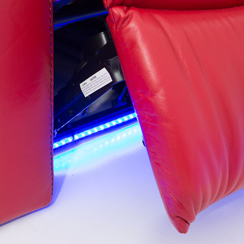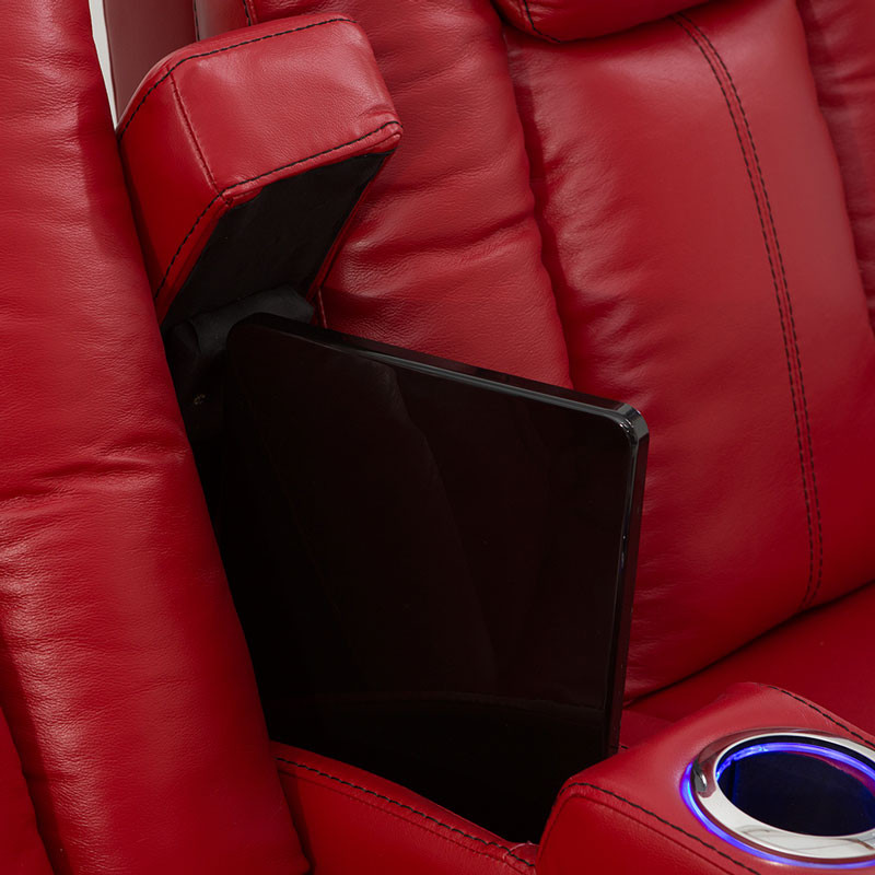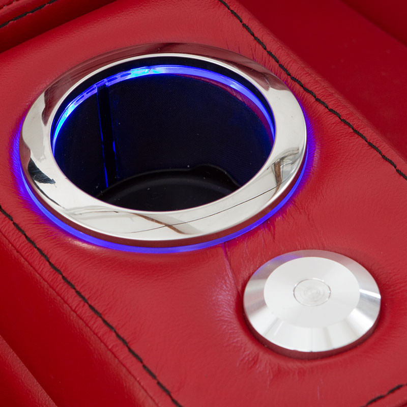Ambient base lighting adds an azure marquee accent, while lighted cup holders keep beverages secure and within arm's reach. Each armrest flips up to reveal plenty of in-arm storage for an easy cleanup of essential items after use. An accessory mount attached to the armrest expands the range of entertainment opportunities at your fingertips, by letting you attach any number of exciting accessories including wine glass caddies, tablets, reading lights and more. Taken together, its eye-catching look and plethora of features make the Delta a must-have among the Seatcraft line.