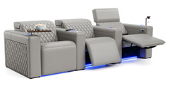 Discover the sophistication of Seatcraft Diamante FX Home Theater Seats with a low-profile design, adjustable powered headrests, and a unique diamond stitch pattern. Elevated by lighted cupholders and ambient base lighting, these seats combine visual appeal with the durability of Italian Leather for a lasting cinematic experience.