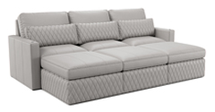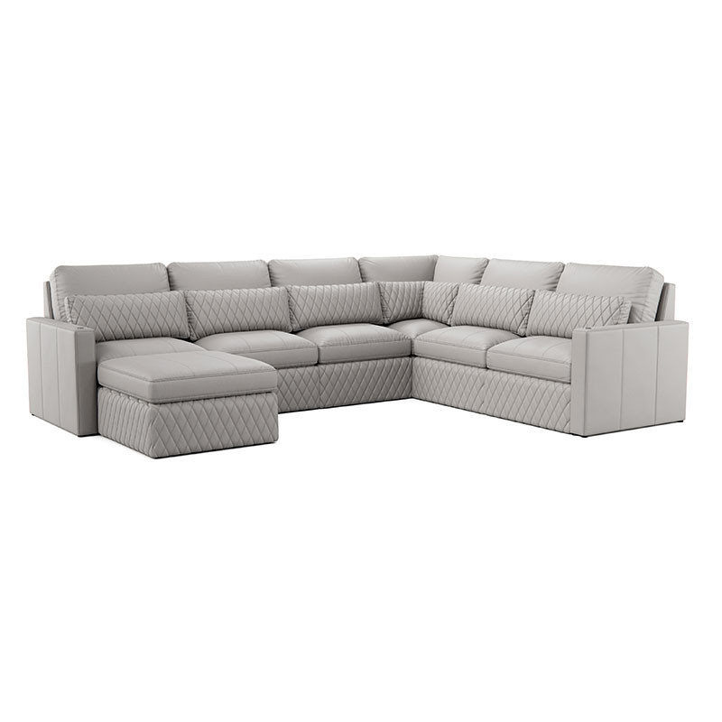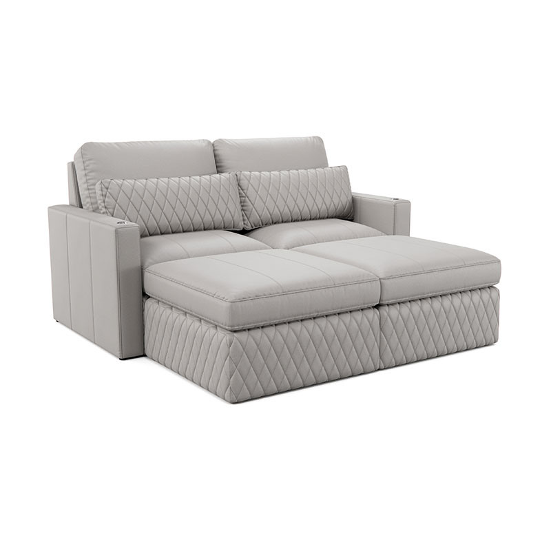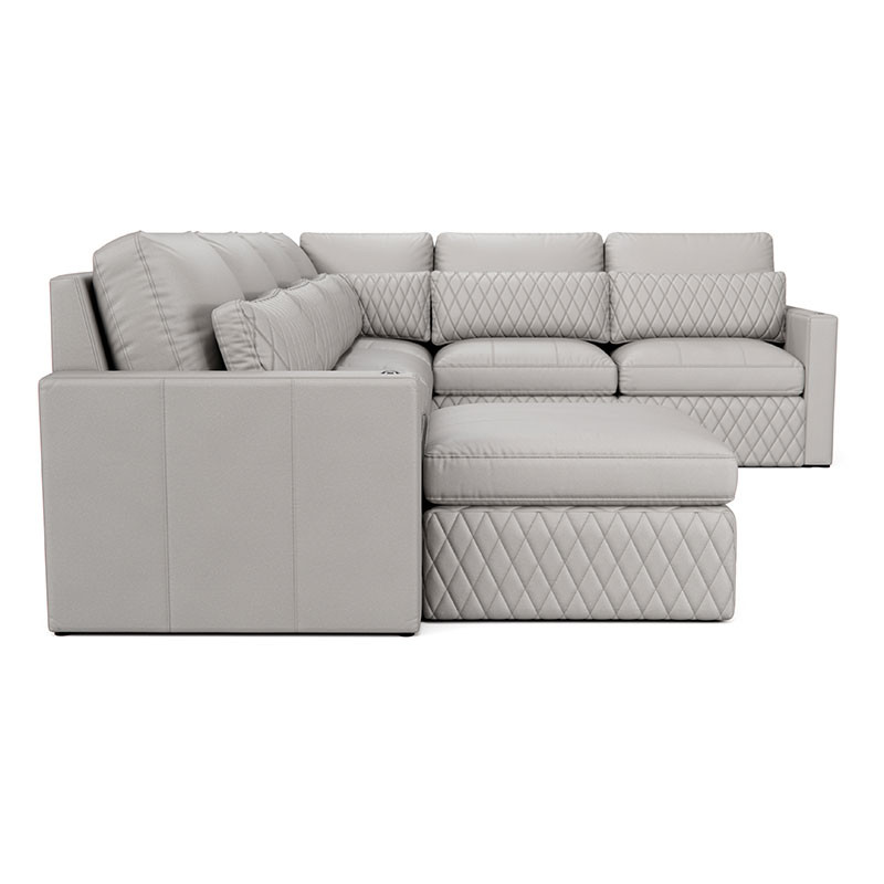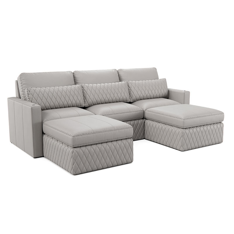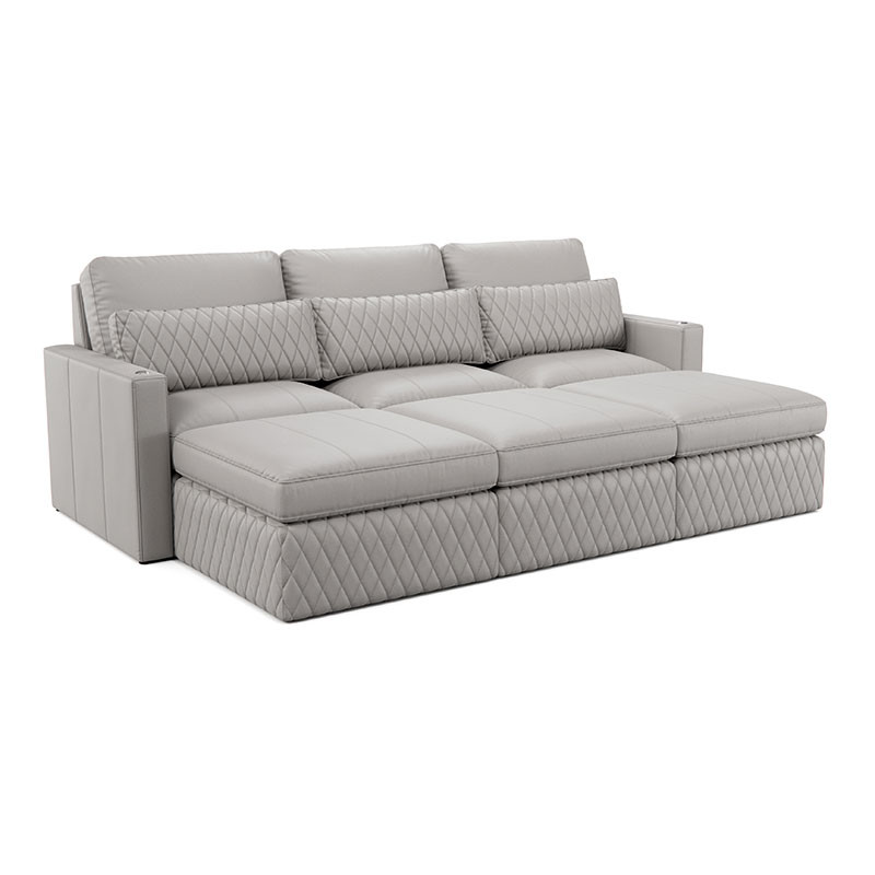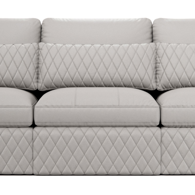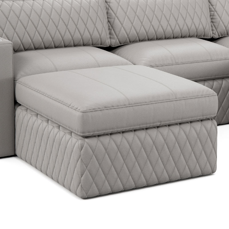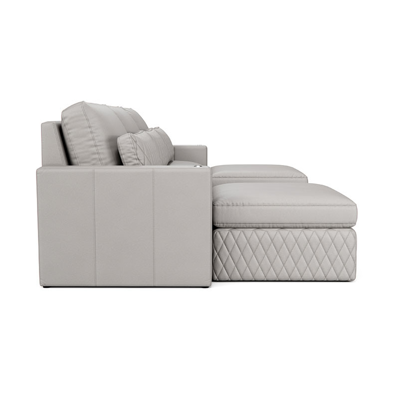 Indulge in the lavish, diamond-quilted pillow, available in a selection of premium leathers, providing essential lumbar support for extended viewing pleasure. Customize your Diamante with additional features like a full-length Italian leather chaise lounge for ultimate relaxation or an ottoman to create the perfect sectional setup tailored to your preferences.