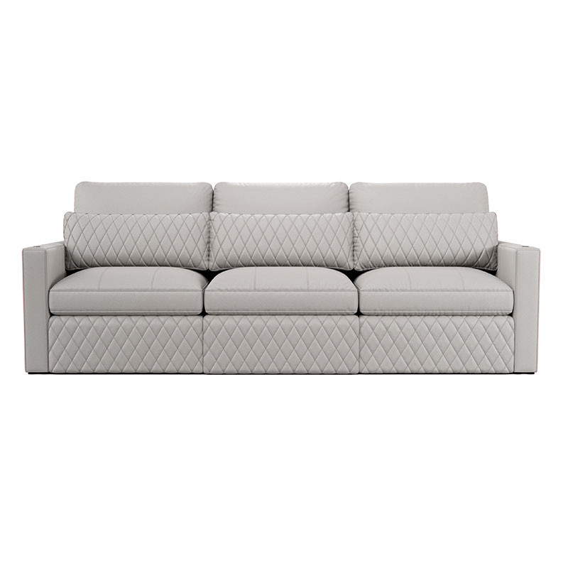 For an added touch of opulence, opt for the optional glass tray table, offering a convenient platform for your favorite beverages and snacks in an air of elegance. Don't settle for less. Elevate your viewing experience with the flagship Seatcraft Diamante home theater seat, now available in a sophisticated sofa design.