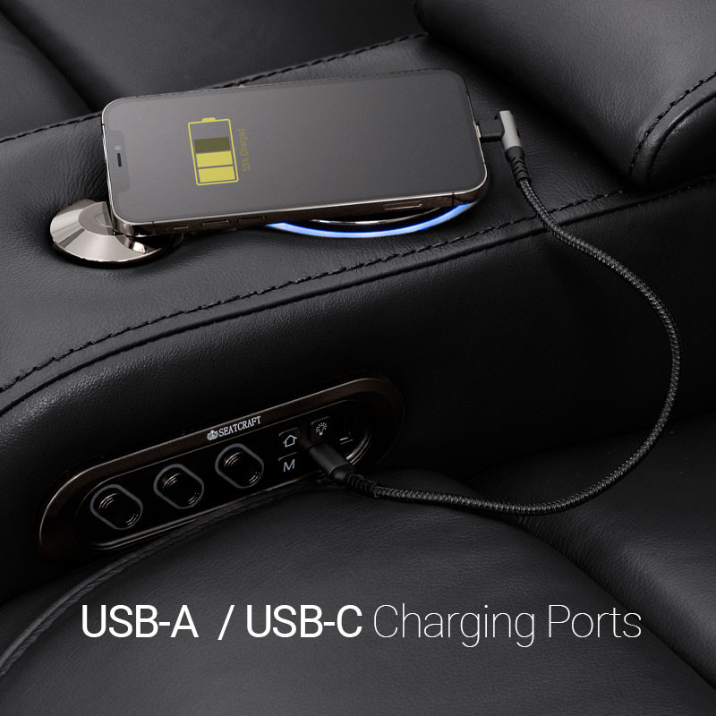 FREE USB-A & USB-C Charging Ports Equipped in Each LED Cupholder, 1 Per Seat