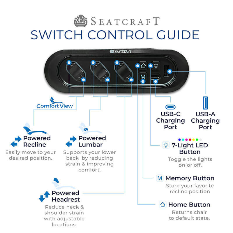 USB-A / USB-C Charging PortsUSB A & C ports are included in this power recline switch.