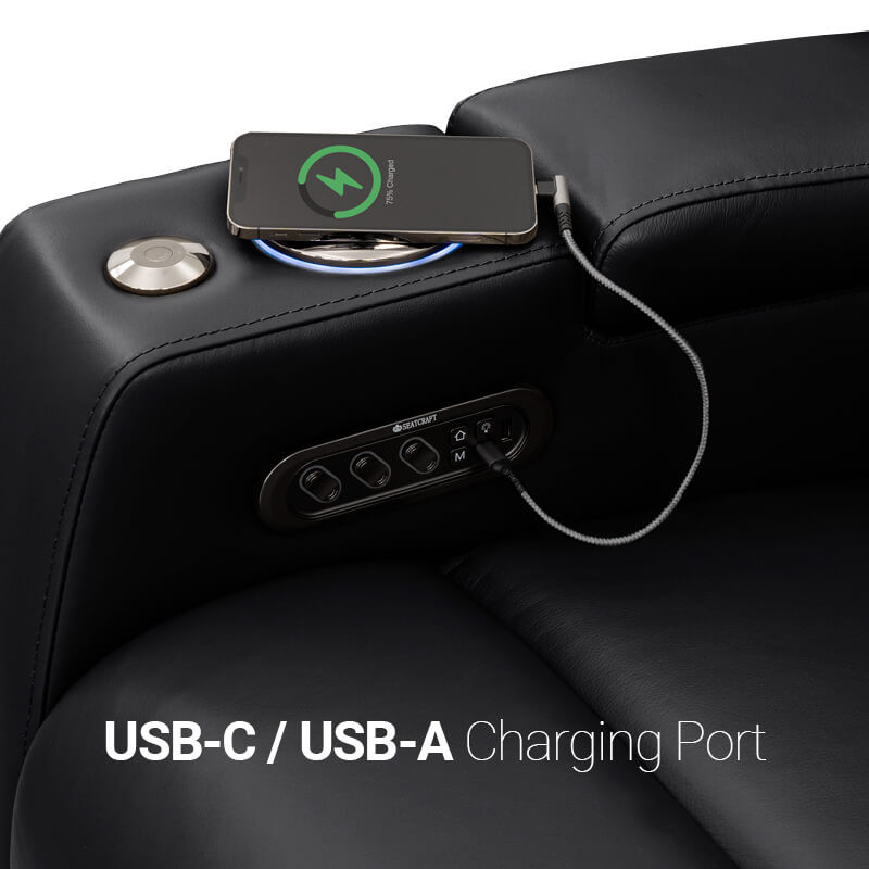 FREE USB-A & USB-C Charging Ports Equipped in Each LED Cupholder, 1 Per Seat