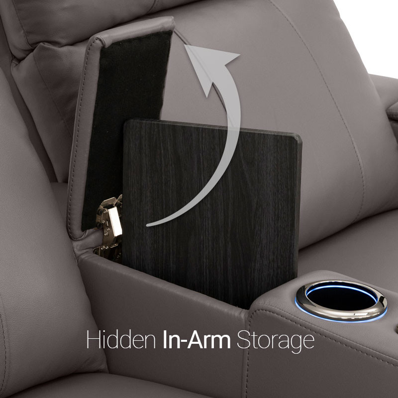 Hidden In-Arm StorageArmrests of this seat open up to reveal plenty of storage room.