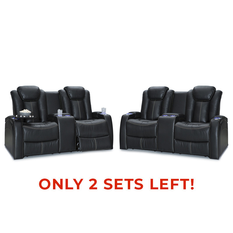 The Seatcraft Republic home theater Multimedia Loveseat combines one of our best chairs with some of the sleekest features. All seats are constructed with top grain leather in black. All configuration includes features such as: Comfort View, Power recline, USB charging station, Lighted Cupholders, Hidden In-Arm Storage, and Wallhugger Seating. Free tray tables are included with your purchase for a full enjoyment of home theater chairs.