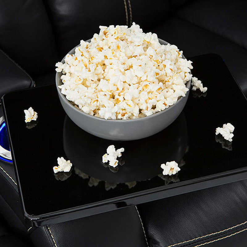Finally you can be at ease, able to focus on the big screen without worrying about your phone or anything else. Simply kick back, set your phone down on this polished black wireless charging table, and pick it back up charged whenever you'd like, without having to fiddle with your charging ports or cables. Easy to clean, durable, and long-lasting, a new innovation from Seatcraft.