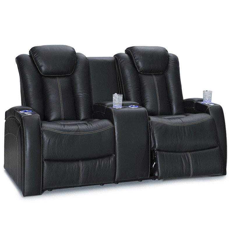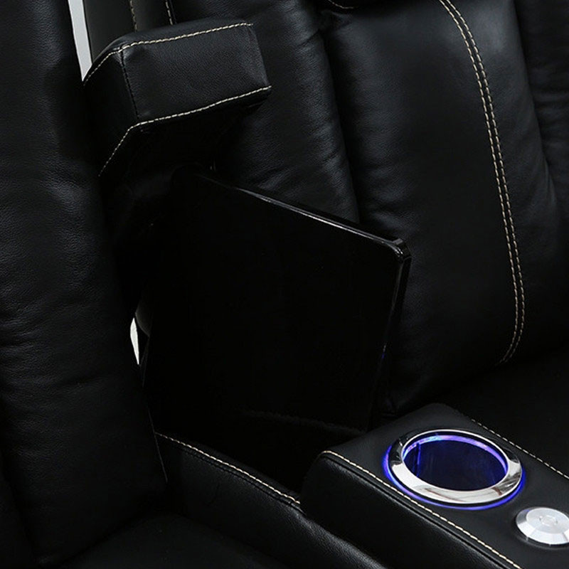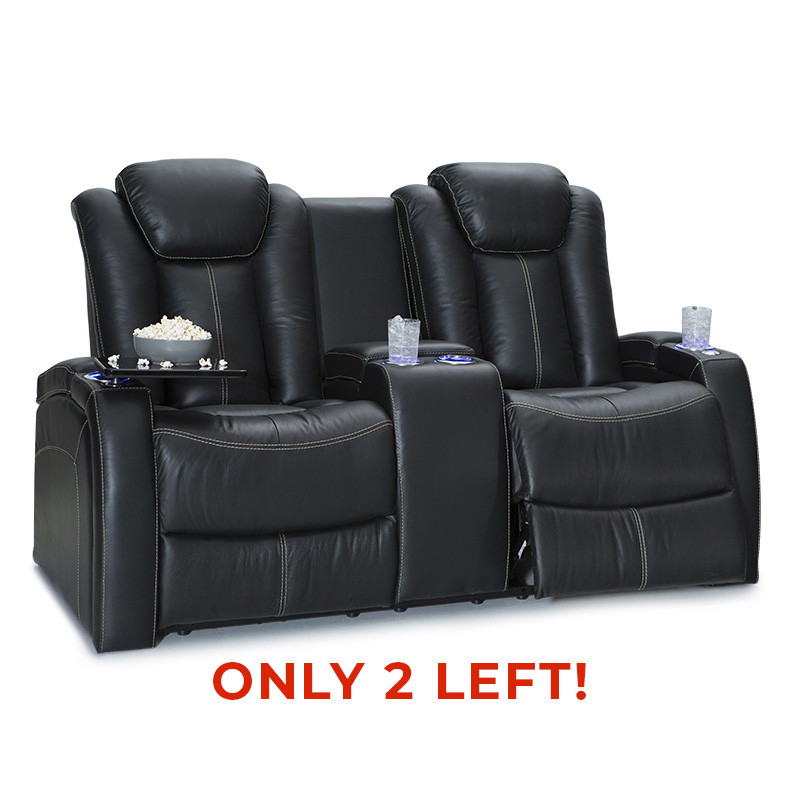 The Seatcraft Republic home theater Multimedia Loveseat combines one of our best chairs with some of the sleekest features. All seats are constructed with top grain leather in black. All configuration includes features such as: Comfort View, Power recline, USB charging station, Lighted Cupholders, Hidden In-Arm Storage, and Wallhugger Seating. Free tray tables are included with your purchase for a full enjoyment of home theater chairs.