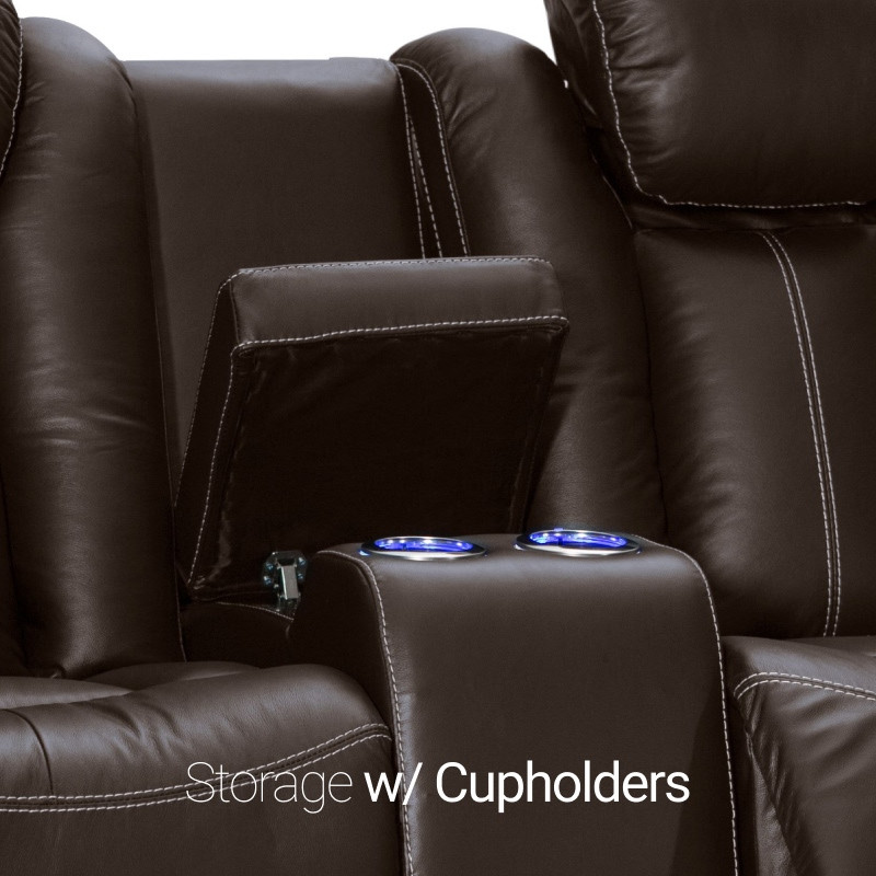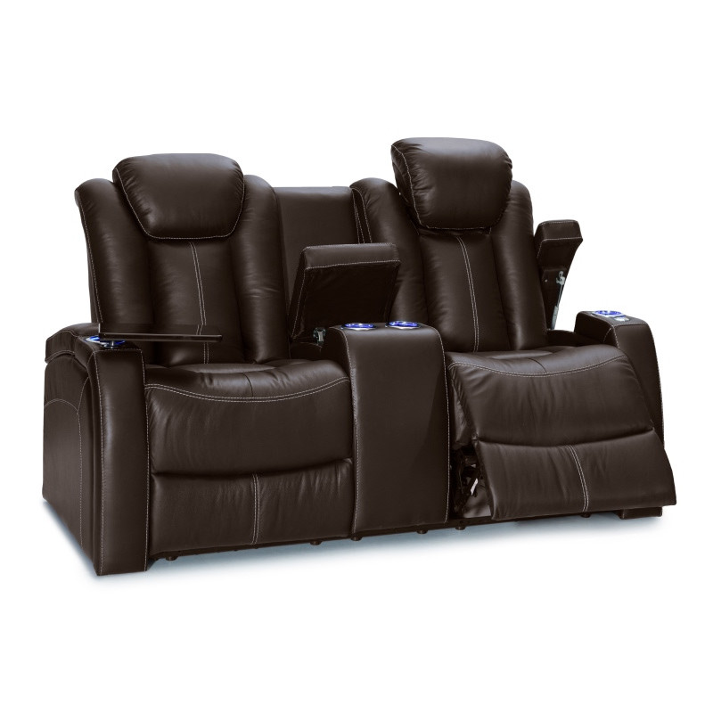 The Seatcraft Republic home theater Multimedia Loveseat combines one of our best chairs with some of the sleekest features. All seats are constructed with top grain leather in black. All configuration includes features such as: Comfort View, Power recline, USB charging station, Lighted Cupholders, Hidden In-Arm Storage, and Wallhugger Seating. Free tray tables are included with your purchase for a full enjoyment of home theater chairs.
