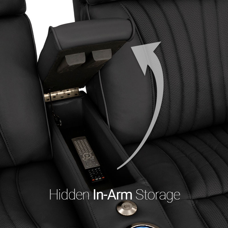 Hidden In-Arm StorageArmrests of this seat open up to reveal plenty of storage room.