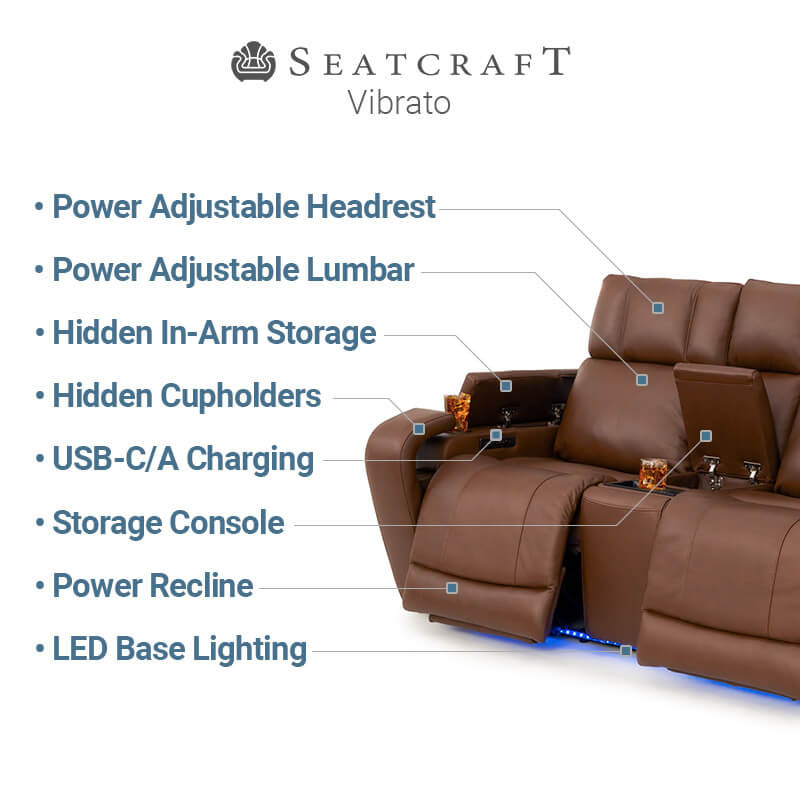 Feel every explosion, rumble, and epic moment with the Seatcraft Vibrato, a revolutionary home theater sofa that turns your movie nights into full-body experiences. Powered by SoundShaker® Immersive Audio, this cutting-edge system syncs built-in speakers, bass, and seat vibrations perfectly with the on-screen action—putting you right in the center of the story.