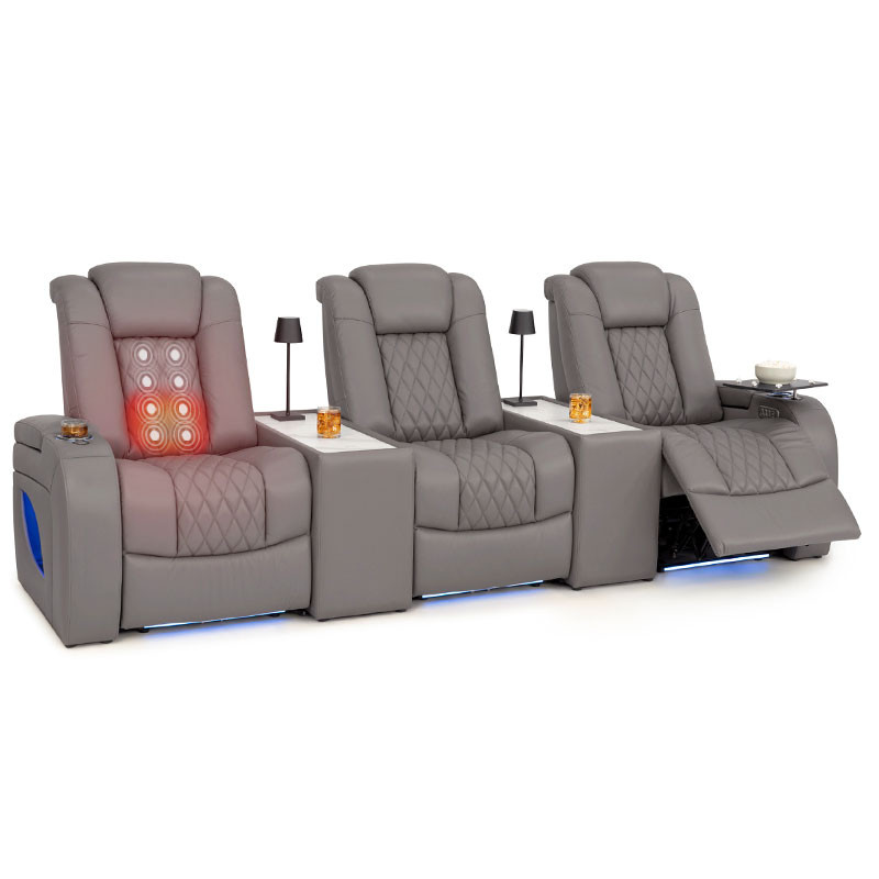 Experience the perfect blend of luxury and durability with the Italian Leather used in Seatcraft's home theater seats. Combining the elegance of old-world craftsmanship with modern-day technology, this eco-friendly leather offers a luxurious feel while being a family and pet-friendly material. Its consistent quality ensures long-lasting stability and comfort, making it an ideal choice for your home theater. With its classic aesthetic, the Italian Leather provides a timeless look, enhancing the beauty of your home theater while offering unmatched sophistication and comfort.