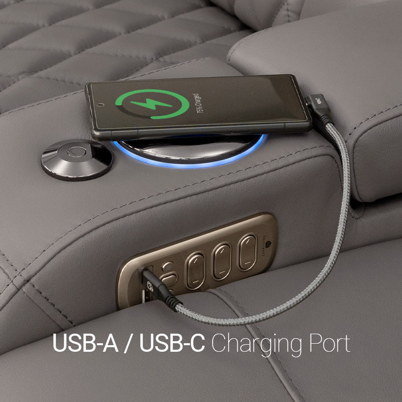 FREE USB-A & USB-C Charging Ports Equipped in Each LED Cupholder, 1 Per Seat